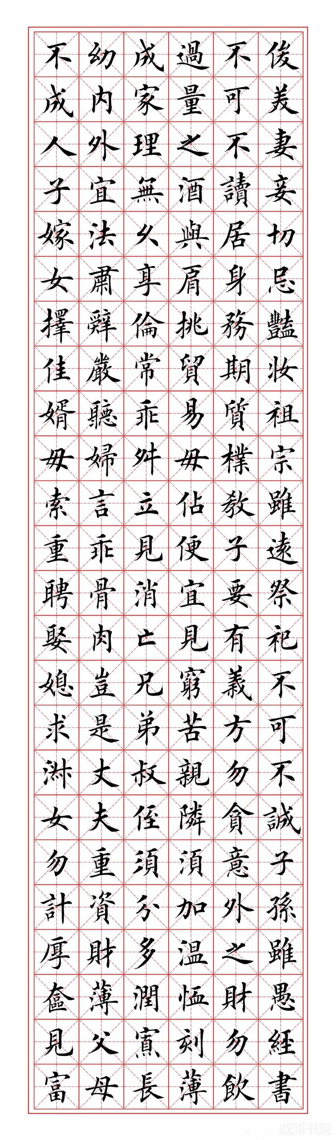 勿贪意外之财,勿饮过量之酒。与肩挑贸易,毋占便宜。见贫苦亲邻,须多温恤。刻薄成家,理无久享。伦常乖舛,立见消亡。兄弟叔侄,须分多润寡。长幼内外,宜法肃辞严。